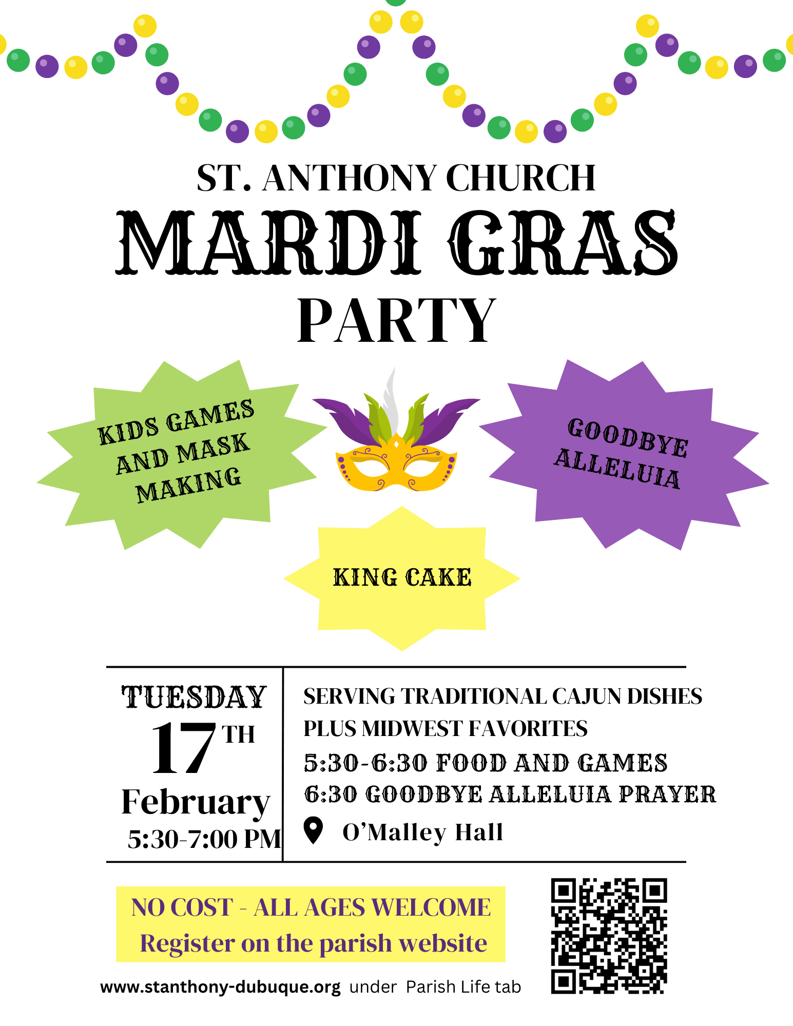 Stay for the Goodbye Alleluia Prayer in preparation for Lent (6:30 pm)